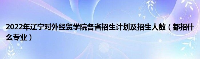 大家好,乐儿来为大家解答以下问题,2022年辽宁对外经贸学院各省招生计划及招生人数,都招什么专业很多人还不知道,现在让我们一起来看看吧!