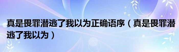 关于真是畏罪潜逃了我以为正确语序,真是畏罪潜逃了我以为这个很多人还不知道,今天菲菲来为大家解答以上的问题,现在让我们一起来看看吧!