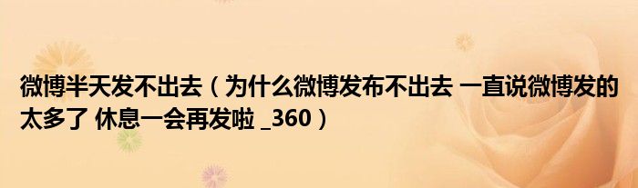 关于微博半天发不出去,为什么微博发布不出去 一直说微博发的太多了 休息一会再发啦 _360这个很多人还不知道,今天菲菲来为大家解答以上的问题,现在让我们一起来看看吧!