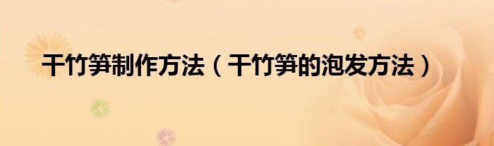 1、干笋十分坚硬,一般浸泡方法很难浸透浸软,下面介绍两种方法: 1.泡发时先将干笋放入铁锅内,加满水后煮30分钟,然后用小火煮焖一会儿,再捞出切除老根,洗净,浸泡在淘米水中待用. 2.先用冷水将干笋泡软后切成薄片,再用少许碱水烧开浸泡5分钟左右捞出,放清水中漂净,即可与其它食品一起烹调.1.先用热水浸泡一天至软.2.换水将竹笋淹没,煮开5-10分钟后换水再煮开,静置1-3天(夏季1天,其他季节时间可长点).3.按2.要求,重复4-6次后,竹笋水已见清亮,竹笋饱满已经泡发好了,就可随时待用了.。