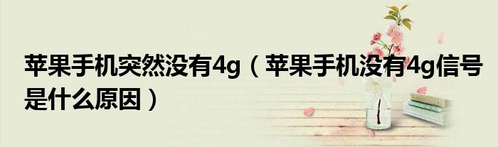 关于苹果手机突然没有4g,苹果手机没有4g信号是什么原因这个很多人还不知道,今天菲菲来为大家解答以上的问题,现在让我们一起来看看吧!