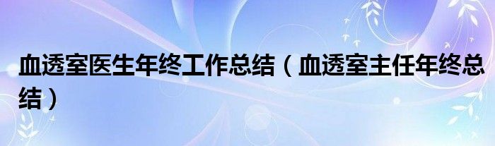 大家好,小联来为大家解答以上的问题。血透室医生年终工作总结,血透室主任年终总结这个很多人还不知道,现在让我们一起来看看吧!