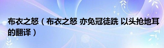 布衣之怒(布衣之怒 亦免冠徒跣 以头抢地耳的翻译)