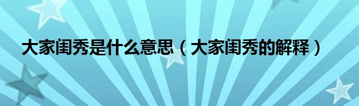 大家闺秀是什么意思(大家闺秀的解释)