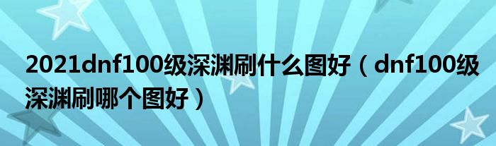2021dnf100级深渊刷什么图好(dnf100级深渊刷哪个图好)