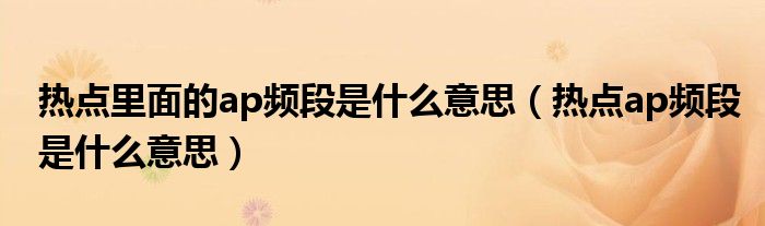 大家好,小夏来为大家讲解下。热点里面的ap频段是什么意思,热点ap频段是什么意思很多人还不知道,现在让我们一起来看看吧!