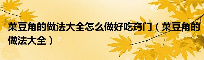 菜豆角的做法大全怎么做好吃窍门(菜豆角的做法大全)
