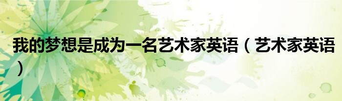大家好,我是小科,我来为大家解答以上问题。我的梦想是成为一名艺术家英语,艺术家英语很多人还不知道,现在让我们一起来看看吧!