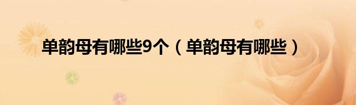 最佳答案大家好,我是小科,我来为大家解答以上问题。单韵母有哪些9个,单韵母有哪些很多人还不知道,现在让我们一起来看看吧!1、单韵母是由一个元音构成的韵母,又叫单元音韵母。2、汉语字音中声母、字调以外的部分,称为韵母,韵母按结构可分为单韵母、复韵母、鼻韵母。3、普通话韵母共有三十九个,单元...