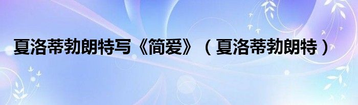 关于夏洛蒂勃朗特写《简爱》,夏洛蒂勃朗特这个很多人还不知道,今天菲菲来为大家解答以上的问题,现在让我们一起来看看吧!