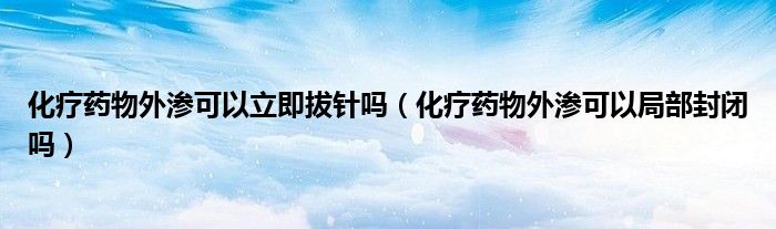 大家好,乐天来为大家解答以下的问题,化疗药物外渗可以立即拔针吗,化疗药物外渗可以局部封闭吗很多人还不知道,现在让我们一起来看看吧!