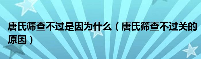 大家好,乐天来为大家解答以下的问题,唐氏筛查不过是因为什么,唐氏筛查不过关的原因很多人还不知道,现在让我们一起来看看吧!