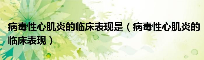 大家好,乐天来为大家解答以下的问题,病毒性心肌炎的临床表现是,病毒性心肌炎的临床表现很多人还不知道,现在让我们一起来看看吧!