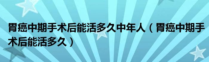 大家好,乐天来为大家解答以下的问题,胃癌中期手术后能活多久中年人,胃癌中期手术后能活多久很多人还不知道,现在让我们一起来看看吧!