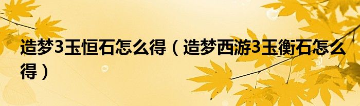 造梦3玉恒石怎么得(造梦西游3玉衡石怎么得)