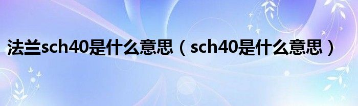 关于法兰sch40是什么意思,sch40是什么意思这个很多人还不知道,今天菲菲来为大家解答以上的问题,现在让我们一起来看看吧!
