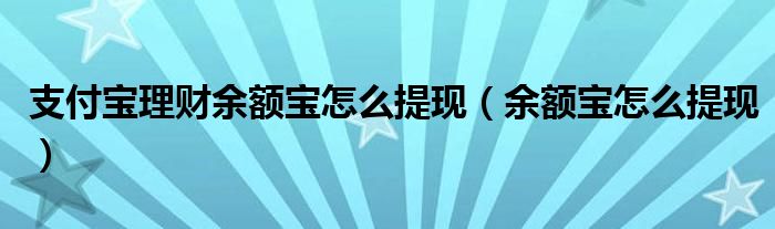 支付宝理财余额宝怎么提现(余额宝怎么提现)