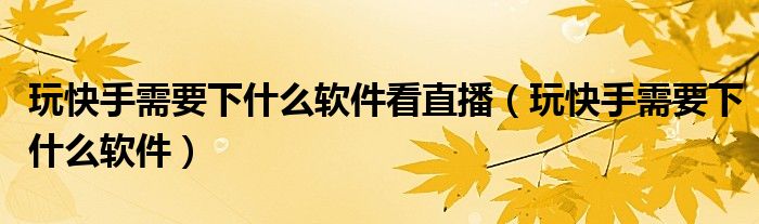 玩快手需要下什么软件看直播(玩快手需要下什么软件)