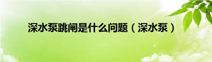 关于深水泵跳闸是什么问题,深水泵这个很多人还不知道,今天菲菲来为大家解答以上的问题,现在让我们一起来看看吧!