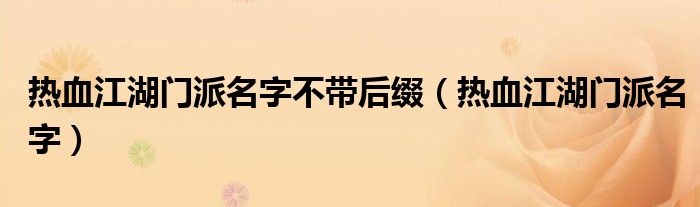 大家好,来宝来为大家解答以下问题,热血江湖门派名字不带后缀,热血江湖门派名字很多人还不知道,今天让我们一起来看看吧!