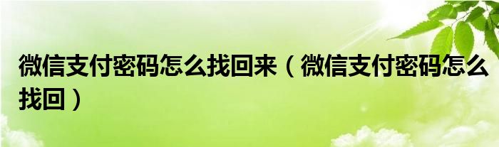 大家好,小晋来为大家解答以下问题,关于微信支付密码怎么找回来,微信支付密码怎么找回很多人还不知道,今天让我们一起来看看吧!