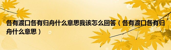 各有渡口各有归舟什么意思我该怎么回答(各有渡口各有归舟什么意思)