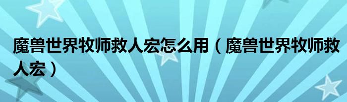 关于魔兽世界牧师救人宏怎么用,魔兽世界牧师救人宏这个很多人还不知道,今天菲菲来为大家解答以上的问题,现在让我们一起来看看吧!