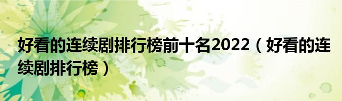关于好看的连续剧排行榜前十名2022,好看的连续剧排行榜这个很多人还不知道,今天菲菲来为大家解答以上的问题,现在让我们一起来看看吧!