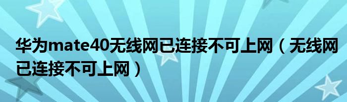 大家好,小晋来为大家解答以下问题,关于华为mate40无线网已连接不可上网,无线网已连接不可上网很多人还不知道,今天让我们一起来看看吧!
