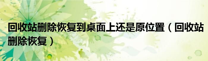 大家好,来宝来为大家解答以下问题,回收站删除恢复到桌面上还是原位置,回收站删除恢复很多人还不知道,今天让我们一起来看看吧!