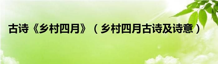 关于古诗《乡村四月》,乡村四月古诗及诗意这个很多人还不知道,今天菲菲来为大家解答以上的问题,现在让我们一起来看看吧!