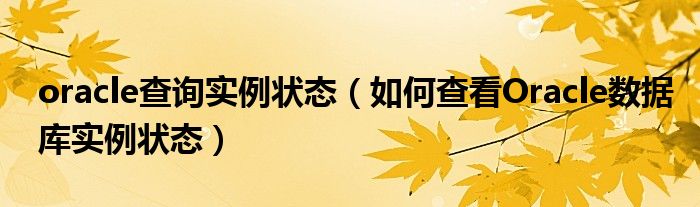 关于oracle查询实例状态,如何查看Oracle数据库实例状态这个很多人还不知道,今天菲菲来为大家解答以上的问题,现在让我们一起来看看吧!