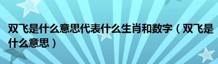 大家好,小晋来为大家解答以下问题,关于双飞是什么意思代表什么生肖和数字,双飞是什么意思很多人还不知道,今天让我们一起来看看吧!