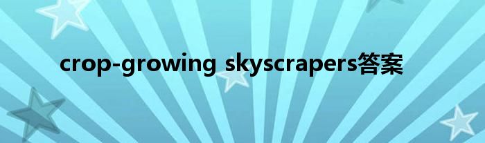 关于crop-growing skyscrapers答案这个很多人还不知道,今天菲菲来为大家解答以上的问题,现在让我们一起来看看吧!