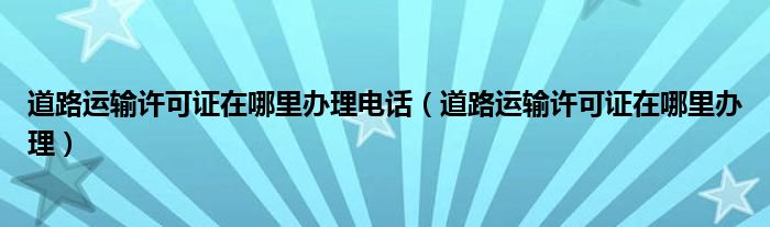 关于道路运输许可证在哪里办理电话,道路运输许可证在哪里办理这个很多人还不知道,今天菲菲来为大家解答以上的问题,现在让我们一起来看看吧!