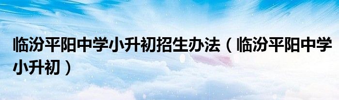临汾平阳中学小升初招生办法(临汾平阳中学小升初)