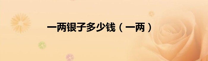 关于一两银子多少钱,一两这个很多人还不知道,今天菲菲来为大家解答以上的问题,现在让我们一起来看看吧!