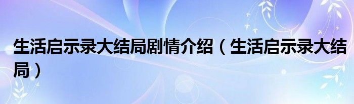 大家好,小晋来为大家解答以下问题,关于生活启示录大结局剧情介绍,生活启示录大结局很多人还不知道,今天让我们一起来看看吧!