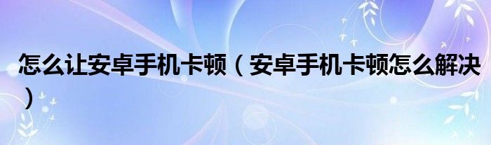 大家好,小晋来为大家解答以下问题,关于怎么让安卓手机卡顿,安卓手机卡顿怎么解决很多人还不知道,今天让我们一起来看看吧!