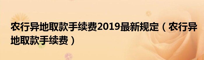 农行异地取款手续费2019最新规定(农行异地取款手续费)