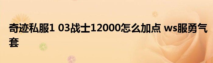 关于奇迹私服1 03战士12000怎么加点 ws服勇气套这个很多人还不知道,今天菲菲来为大家解答以上的问题,现在让我们一起来看看吧!