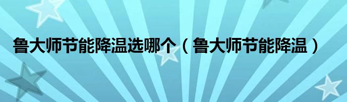 大家好,来宝来为大家解答以下问题,鲁大师节能降温选哪个,鲁大师节能降温很多人还不知道,今天让我们一起来看看吧!