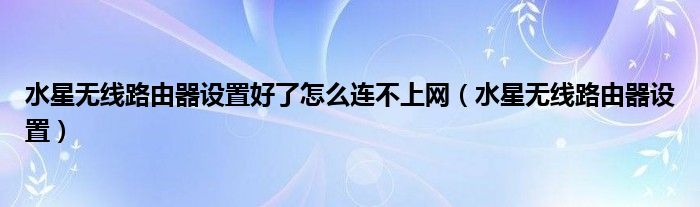 大家好,来宝来为大家解答以下问题,水星无线路由器设置好了怎么连不上网,水星无线路由器设置很多人还不知道,今天让我们一起来看看吧!