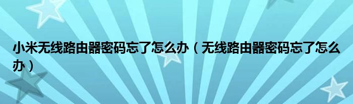 大家好,来宝来为大家解答以下问题,小米无线路由器密码忘了怎么办,无线路由器密码忘了怎么办很多人还不知道,今天让我们一起来看看吧!
