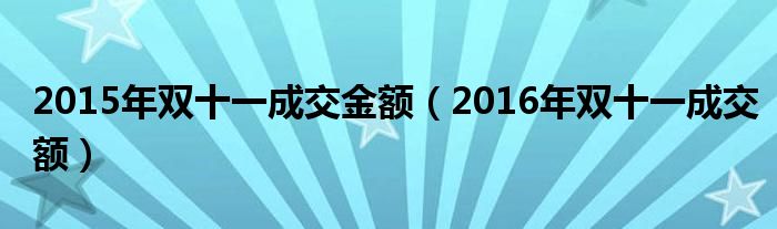 大家好,来宝来为大家解答以下问题,2015年双十一成交金额,2016年双十一成交额很多人还不知道,今天让我们一起来看看吧!
