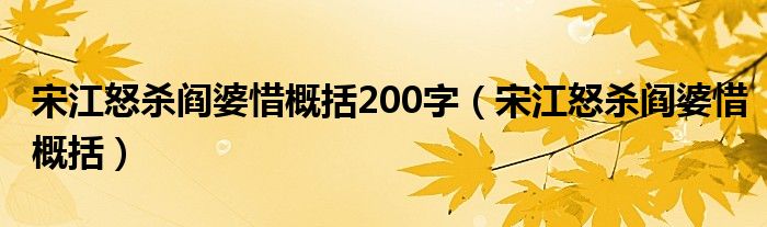 关于宋江怒杀阎婆惜概括200字,宋江怒杀阎婆惜概括这个很多人还不知道,今天菲菲来为大家解答以上的问题,现在让我们一起来看看吧!