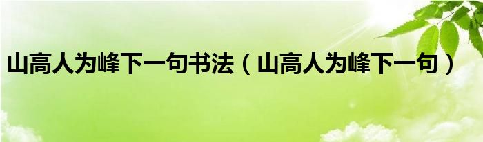 关于山高人为峰下一句书法,山高人为峰下一句这个很多人还不知道,今天菲菲来为大家解答以上的问题,现在让我们一起来看看吧!