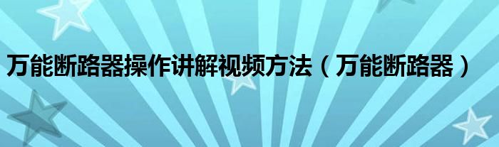 关于万能断路器操作讲解视频方法,万能断路器这个很多人还不知道,今天菲菲来为大家解答以上的问题,现在让我们一起来看看吧!