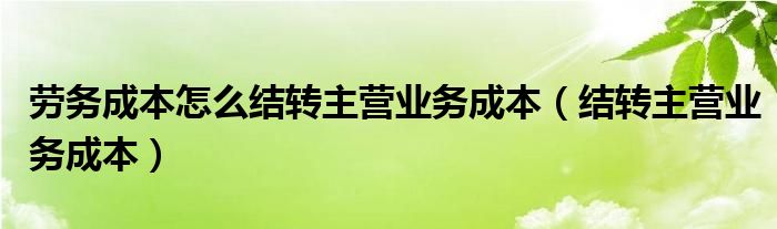 关于劳务成本怎么结转主营业务成本,结转主营业务成本这个很多人还不知道,今天菲菲来为大家解答以上的问题,现在让我们一起来看看吧!