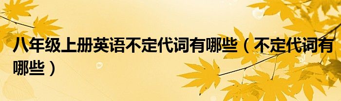 关于八年级上册英语不定代词有哪些,不定代词有哪些这个很多人还不知道,今天菲菲来为大家解答以上的问题,现在让我们一起来看看吧!